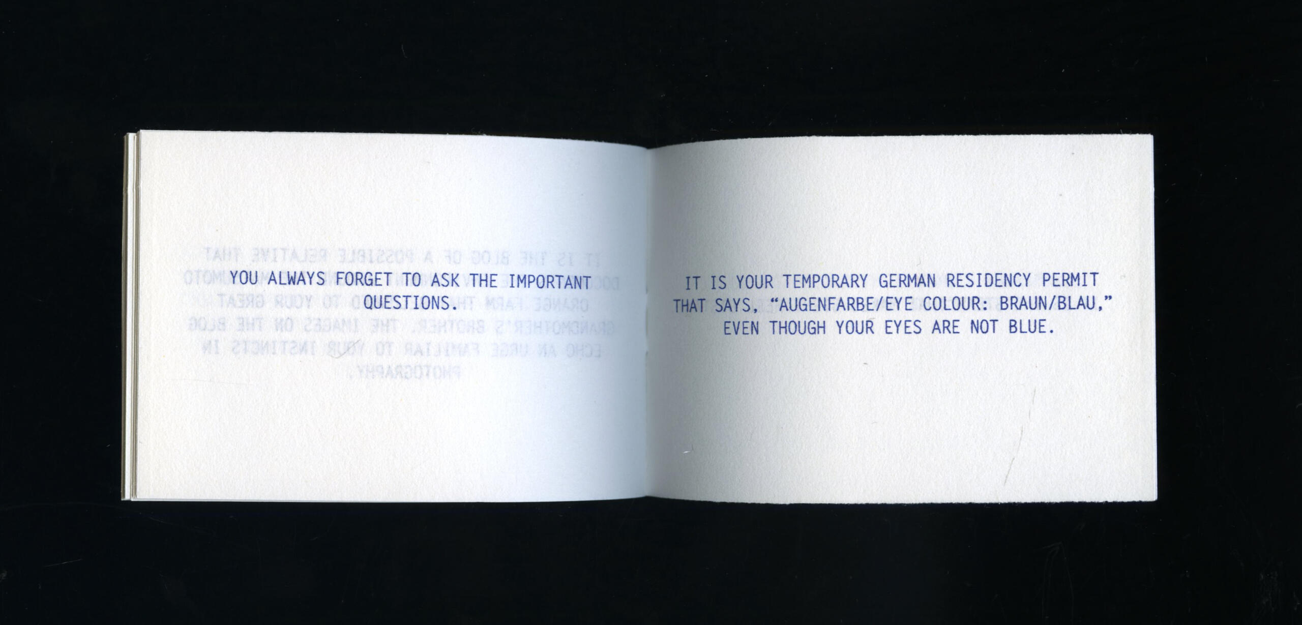 The project has been exhibited in part at:EVEN STILTE. EXPOOST, Hoorn, NL, March–April 2023.BEGEGNUNG. European Month of Photography (EMOP) Berlin, March–April 2023.vonisichaus, solo show at Lindenstr. 90 (Kang Contemporary Gallery), January 2023.YETYET Abschlussaustellung Kunsthochschule Weißensee at Kühlhaus Berlin. July 2022.Inner Landscapes, a duo exhibition with Anna Swagerman at Hotel Maria Kapel in Hoorn, NL. May 2022. Read more about the exhibition here.